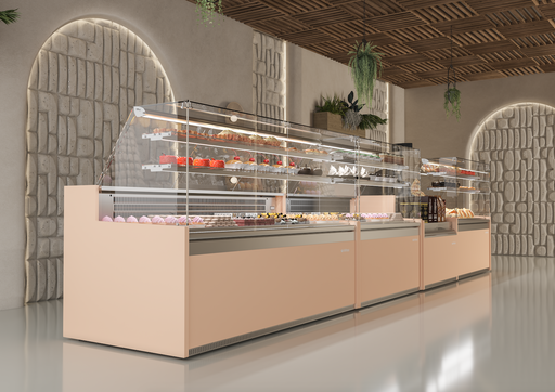 El modelo Oneshow Free es el escaparate profesional perfecto para helados y pastelería.
