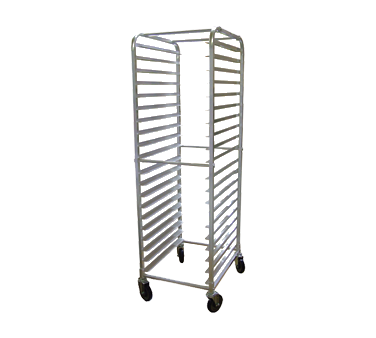 (23828) Pan Rack, mobile, full size, open sides, curved top, (20) welded angle slides, 3" spacing, capacity (20) 18" x 26" pans, aluminum construct...