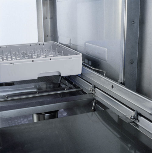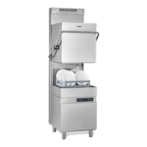 Lavavajillas electromecánico con lavado superior giratorio. Fabricado en acero inoxidable. Tiene una producción de 30 cestas/hora y una potencia má...