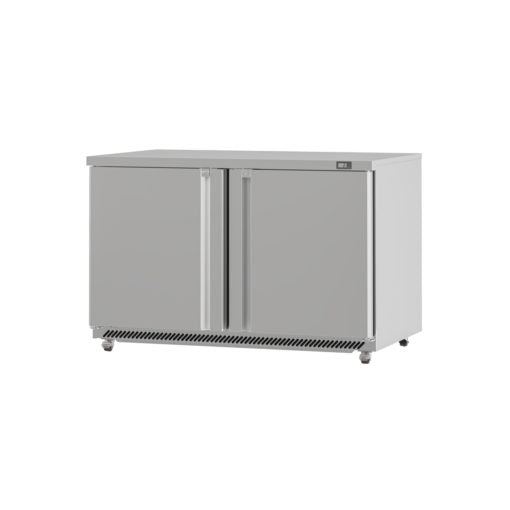 Mesa undercounter refrigeración línea americana, con frente y costados en acero inoxidable Respaldo en acero galvanizado. Tabla de corte polietile...