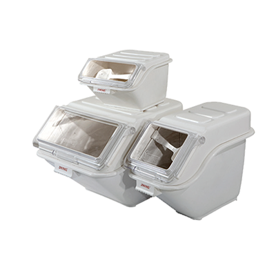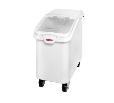 Shelf Ingredient Bin, scoop included, stackable, clear cover, white, NSF 21 Gallon Bin: Capacity - 170 lbs sugar / 140 lbs flour 27 Gallon Bin: Cap...