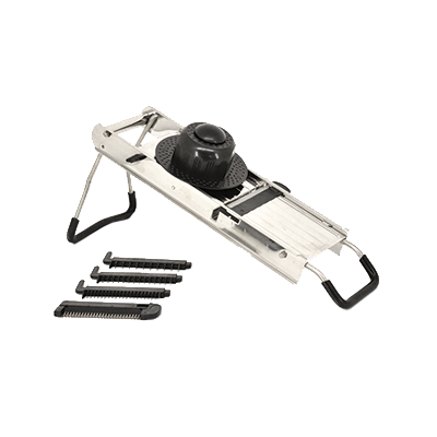 (13659) Mandoline Vegetable Slicer, manual, includes (5) interchangeable cutting blades, plastic hand pusher, rubber feet, adjustable thickness to ...
