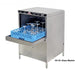 The CMA-181VL is a hot water sanitizing, single rack, under-counter glass washer. It is a standalone machine featuring a self-contained booster heater. The only external connections necessary are power supply, cold water supply, drainpipe, and chemical dispensers.