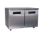 Commercial Series Undercounter Freezer, reach-in, two section, 13.66 cu.ft., self-contained refrigeration system, stainless steel exterior front, sides & top, stainless steel interior, solid hinged doors, (2) adjustable shelves, (4) 4" stem casters (2 with brakes), R-134A refrigerant, 1/3 hp, cETLus, ETL-Sanitation